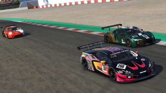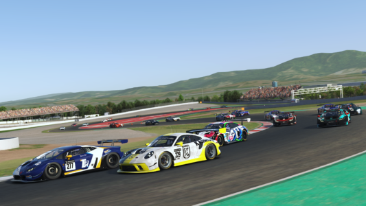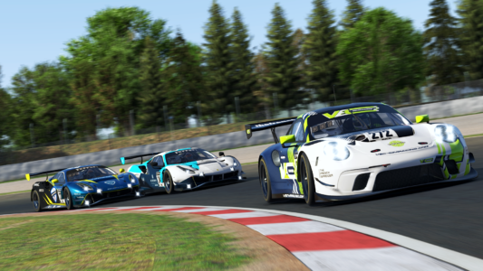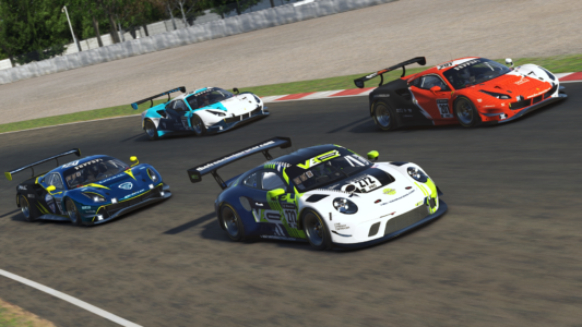 La Kairos eSports #229 prend la tête de la course, suivi du SPE7 by LTC #207, et de la V10R eSport #1.